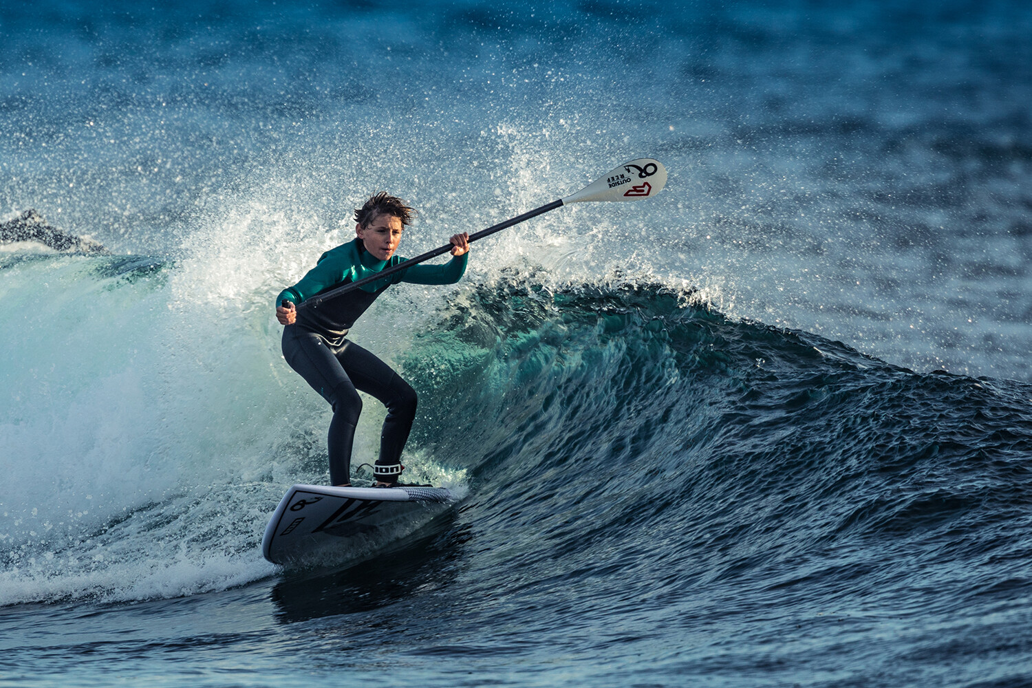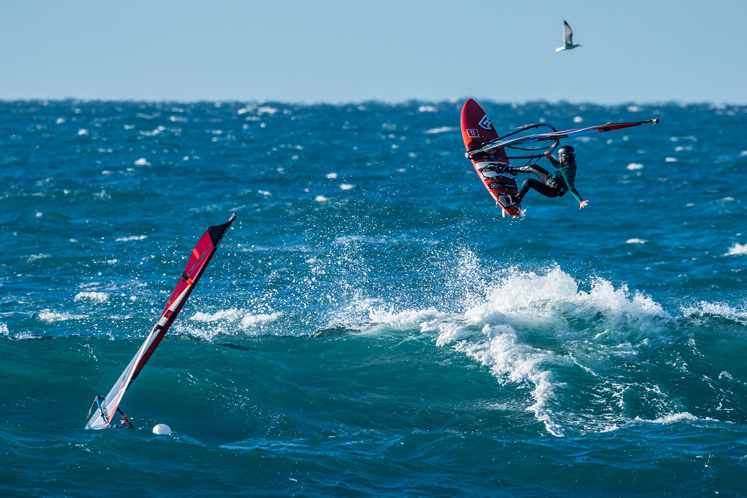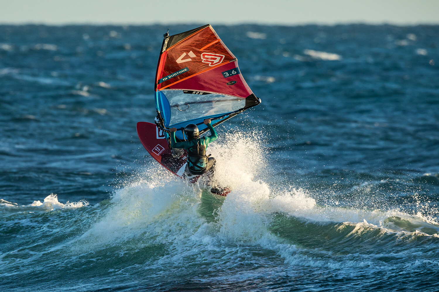 The new kids’s kit our group was using has a lot of development behind it. Kai Hopf, Duotone’s designer, made dozens of prototypes before launching the ‘Now’ range to production. The sails are ultra-light, the diameter of the booms are adapted for small hands and the overall performance of the rigs match the best adult’s gear! When it comes to boards, the new Fanatic Grip XS is a 60 litre wave board that finally allows children to crank turns down the wave face like adults. This board is also suitable for lightweight riders, especially women. Sebastien Wenzel, Fanatic’s shaper, has developed it with his young team of riders who weigh between 40 and 60 kilos when wet! There has been real work on the thickness of the rails and the distances between the mastfoot and the footstraps to fit small legs!
