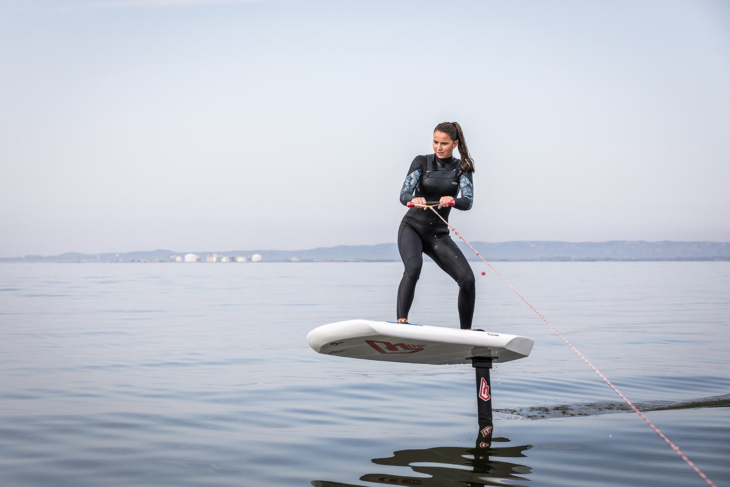 They have always spent their summers in Hossegor and are very good surfers. Tom Guillo (15 years old) is a young waterman who lives not far from Carro, in Sausset les Pins. His father put him on a surfboard as soon as he was able to swim and he then started to SUP, windsurf and wind-foil. He also excels on snow and downhill mountain biking and had just won his first French downhill MTB championship. He has an inner sense of balance and an amazing ability to disconnect his brain. He is the stuntman of the trip, sending back flips on his bike to impress passers-by! Esteban de Cruz (13 years old / 33 kilos) is a dedicated windsurfer from Marignane and dreams of walking in the footsteps of all the big French names on the PWA slalom tour. He is the same size as my son, César Filippi, who has just turned 12 and is completely focussed on waves. Whatever the gear he rides, he only thinks of surfing and jumping. With Manu Morel and myself, our team is ready to traverse France looking for the best conditions but given the calm weather, we decided to start our journey with a day of foil wake surfing, thanks to Anne Louvet and Philippe Bracar and their boat! Kai Lenny has revolutionized flat water foiling and it has become as fun as a good wave session. The troops foil until dusk and those who were reluctant to try are now completely won over and everyone has easily managed their first flights and first tumbles! There was no injuries on this first day and everyone was so tired they fall straight asleep. So far so good!
