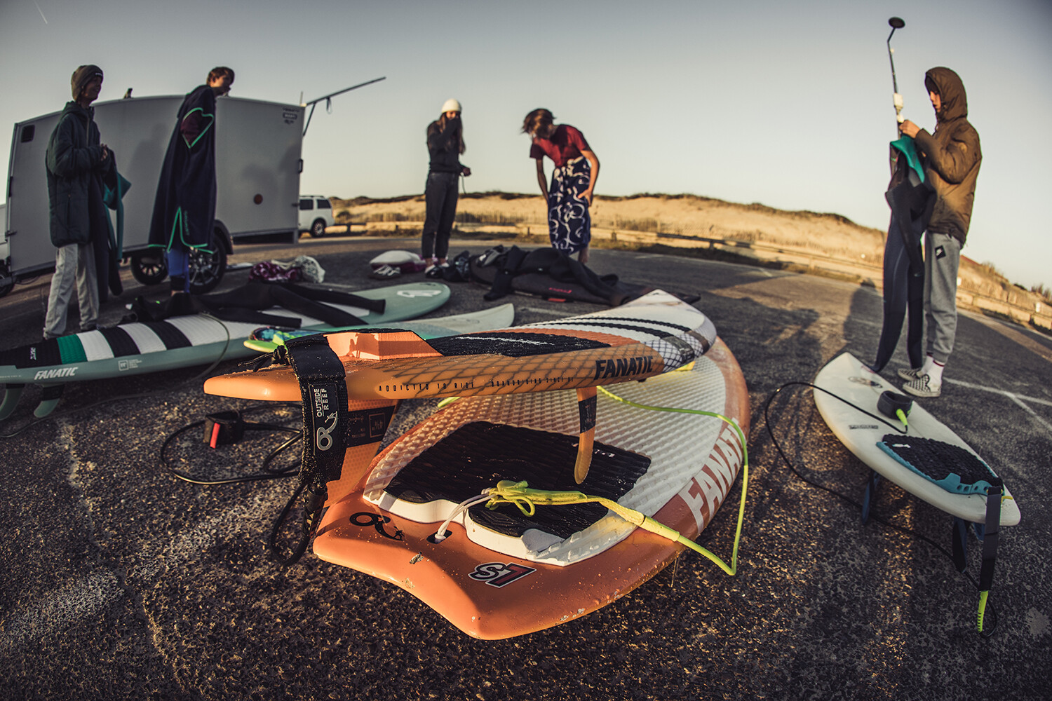Most parents know that for children to have fun, they have to be with their friends. Putting a kid on the water with windsurfing equipment and wind will not be enough to get him hooked. But if he finds himself spending this same day with friends of his age, the magic will happen! Therefore we gathered a team of kids for a journey that would take shape according to the weather conditions. Not all of them were windsurfers, but we wanted to make them discover all the board sports available and learn from each other. Today, there are so many different ways to have fun with boards, that I did not plan a single second of rest for the whole two weeks! Our trailer was filled with sails, boards, foils, surfboards, SUPs, skateboards and some surprises! Manu Morel, our faithful photographer, came with us to immortalise our sessions, but also to help me manage the team! Two weeks with a bunch of kids – we must be mad!