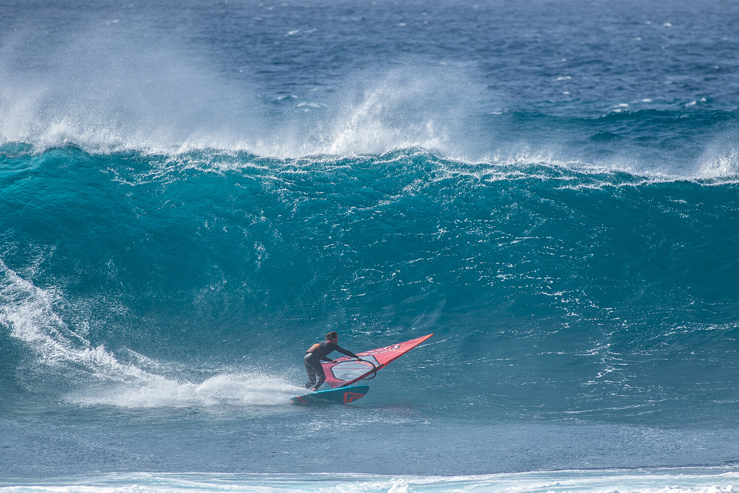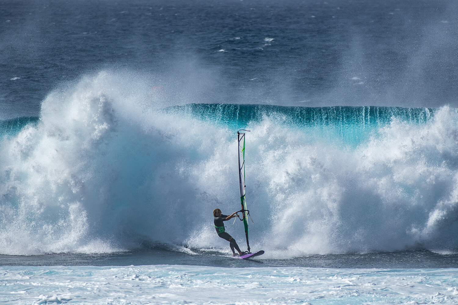 Tenerife has become the winter go-to spot for slalom sailors, but let’s not forget Tenerife in winter can also offer huge Atlantic surf on more exposed parts of the island. Visiting Polish PWA racer Maciek Rutkowski took a break from training round the buoys to sample the big stuff.