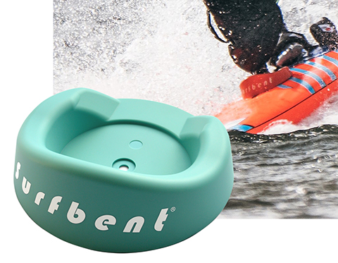 Surfbent say, “If you want to stop your beloved board being damaged and avoid annoying repairs, then the new Surfbent windsurf board protector (wbp) can help. The Surfbent wbp consists of a tough plastic material that mounts directly onto your mastfoot and reduces the energy of the impact via the powerjoint or tendon (energy reduction through deformation), so that damage to the nose is reduced or avoided. The Surfbent wbp is available in four colours, weighs approx. 250 g and can be mounted on any board with a mastfoot up to 110 mm in diameter. The price is €59 – cheaper than most board repairs.“