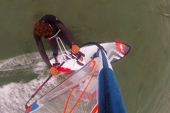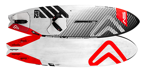 The unique Nano II design is matched by its riding style and nature on the water. The optimum setup is key for its performance and that setup is in keeping with its modern surfboard styling – mastfoot right to the back of the track and rear footstrap right at the back (with front strap in middle position) to maximise its planing and encourage the wider ‘pro’ stance it is designed to be ridden with. As power is provided through the sail, reach for the straps early and weight the Nano’s tail to aid planing. Under way the Nano had an average speed within the group and prefers powered conditions where it cuts through chop well, the deep vee through its bottom shape helping to iron out the ride. The required stance will take time for some to adjust to, but when riding, whether cross-on or cross-off, the Nano thrives on being driven hard and aggressively through the back foot like a surfboard and is capable of making the tightest sections. Rather than setting the Nano on the rail and heading down the line and redirecting, the Nano prefers a more active approach – you need to wait on the wave until the last moment, before driving through turns confidently and pushing all your might through the tail. Get your timing right and the Nano will punch aggressively off the top, its compact concentrated nature in the rear giving the rider the control for re-entry down the face. It makes you feel like a superhero, inspired to charge harder through the next turn! We had a chance to try the Nano in many different setups and preferred it as a quad, using the Severne fins in the optional extra bundle. The thruster setup was almost too loose in feeling, whereas we found the quad setup complimented its style and performance perfectly.