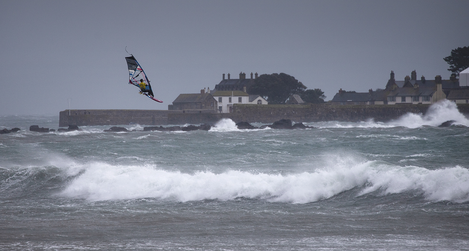 Day 2 of the 2019 Cornwall Wave Classic saw the first action of the event and the Pros did not disappoint, putting on a show in the challenging, stormy conditions at Marazion. Phil Horrocks was one of the first to hit the water to warm up; Jamie Howard, James Cox and Andy King were pulling huge, floaty airs and crazy, stalled forwards and back loops in the hefty squalls. The local weather station from the Culdrose airbase showed the wind gusting over 60 mph for most of the morning!