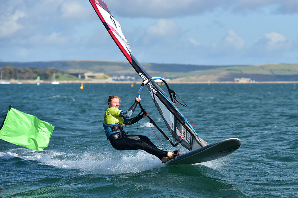 Weymouth Speed Week is the longest running speed event on the planet. Started in 1972 by Sir Timothy Colman (yes he of Colman’s Mustard) it soon got a reputation for fast speeds, innovation and pushing the boundaries of what could be achieved with sail power. That heritage lives on, it may not be as big as its Johnny Walker sponsorship heyday and in speed terms has been overtaken by purpose-built speed strips in France and Namibia. But it still draws the best speedsailors from all over Europe and beyond. Guaranteeing wind is hard in the UK. So the event is always held in October to try and tap into the high winds generated by low-pressure systems that come through that time of year. The forecast for the 2019 opening day looked light but the rest of the week looked good. The big question however was would the event harbour record of 38.44 knots, set by Anders Bringdal in 2008 go? The first prize giving was for the youth fleet,who only race on the weekend, and was sponsored by Boardwise. The battle for the top spot from last year between Tyler Baker and James Faley started all over again. This year the skill level of all the riders went up through the roof. The result could not have been closer with Tyler taking the top spot at 30.85 knots and James only 0.3 of a knot behind. From Sunday the lead for fastest speed of the week changed hands every day and it was fantastic to see the new generation of windsurfers showing how good they have become. Ahead of a very experienced fleet was young 19 year old Scotty Stallman with a very impressive 34.43 knots set on very choppy water on a course in the harbour due to the southerly wind direction. Then on Monday 22-year-old James Battye took it up to just under 35 knots in knee high chop. Wednesday onwards the wind changed direction to southwest, which allowed for a flat beach course to be set along the causeway.