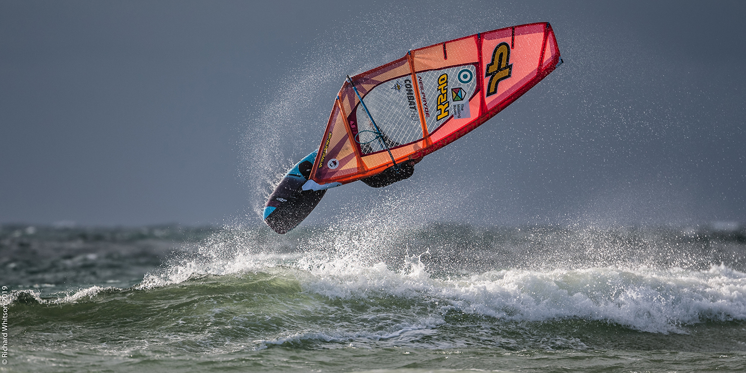 After a light wind rest day, the Thursday forecast held for 20+ knot port tack, cross-shore winds and a 3m swell, meaning it was an all-day battle at the Maze. Due to the daylight shortage a trailer was loaded the evening before with around 60 of the Pro Men’s pre-rigged sail choices and transported round to the Maze at night so they could start soon after first light.