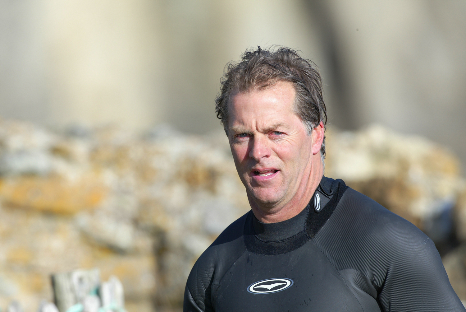 PRIZE GIVING: That was about it. Back on land the gathered throng afforded us a warm hand. The rest is history as they say. Whitey had been talking the loops up all week telling me of his Essex training session and not getting off the water until he’s done 25. These days a forward is nothing wildly out of the ordinary, but I have to admit is a bit special when you see 18 stone of finely tuned blubber whirling above the ocean. When I heard he put in a couple behind my back, I felt the decision slipping away. It turned out that the judges (and I use the word loosely) awarded him the jumps, me the riding but that Whitey edged it on the transitions. He did one of his twiddly twirly ‘Essex ducks’.