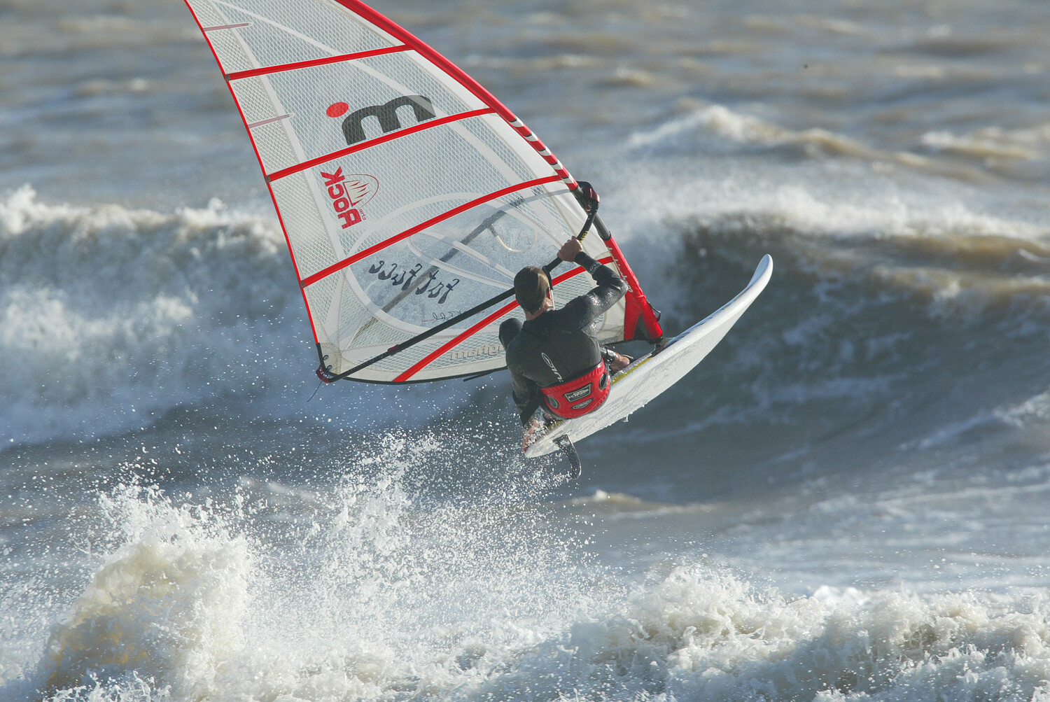 Way, way back in November 2003, the day after an epic White Air competition, there was an epic forecast for Niton on the southern tip of the Isle of Wight. Despite Dave White single handily blocking the whole narrow access was with his massive demo van, eventually there was an epic session had by all. Towards the end of the day, John Carter came up with the idea to pitch best friends but also arch-rivals Dave White and Peter Hart into a 30 minute, head to head battle on the water. What ensued provided a hilarious half an hour of entertainment for the judges and crew on the beach. Prizes made out of driftwood and old tyres were hastily assembled and after much debate the winning trophy was awarded to Dave White, despite Harty’s protests. Read on for Peter Hart’s hilarious take on this legendary encounter!
