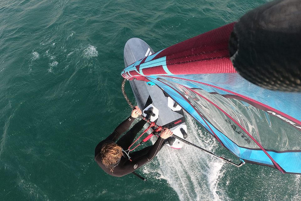 The Fox has had a ‘Mach-blue’ graphic update for 2020, but otherwise remains unaltered for this season. Used in light airs, it gets going early but doesn’t really release or feel as alive as some in the group, its narrower outline and thinner tail profile resulting in it sitting lower in the water, allowing for less drive and feedback through the fin. This is certainly noticeable in marginal fluky winds, when others in the group seem to glide through the extended lulls more efficiently. As the wind increases and you can load the power, the Fox turns on, beginning to exhibit its potential. And as we found in years past, it really comes into its own when the conditions become volatile, its deep vee hull making light work of the harshest sea states, smoothing out the ride and enabling the rider to keep the hammer down. Partnered with an efficient sail, it’s simply in a class of its own, making charging around in coastal conditions a real delight, when the ride on a slalom board would be a bone-shuddering mental-strength challenge. The thick contoured deckpads also help in this instance, providing extra comfort and helping to trim the board without stressing the rider’s stance, or requiring any extra effort. In the gybe, the Fox’s comparatively thin and tucked rail outline comes into effect, biting and gripping smoothly and helping the rider to push with confidence through the turn. Since the Fox has a Powerbox, the opportunity for foiling compatibility is not there. Instead, this is a purist machine, for those that like to sail powered at all times and are looking for a board to back them as they contend with variable seas states.