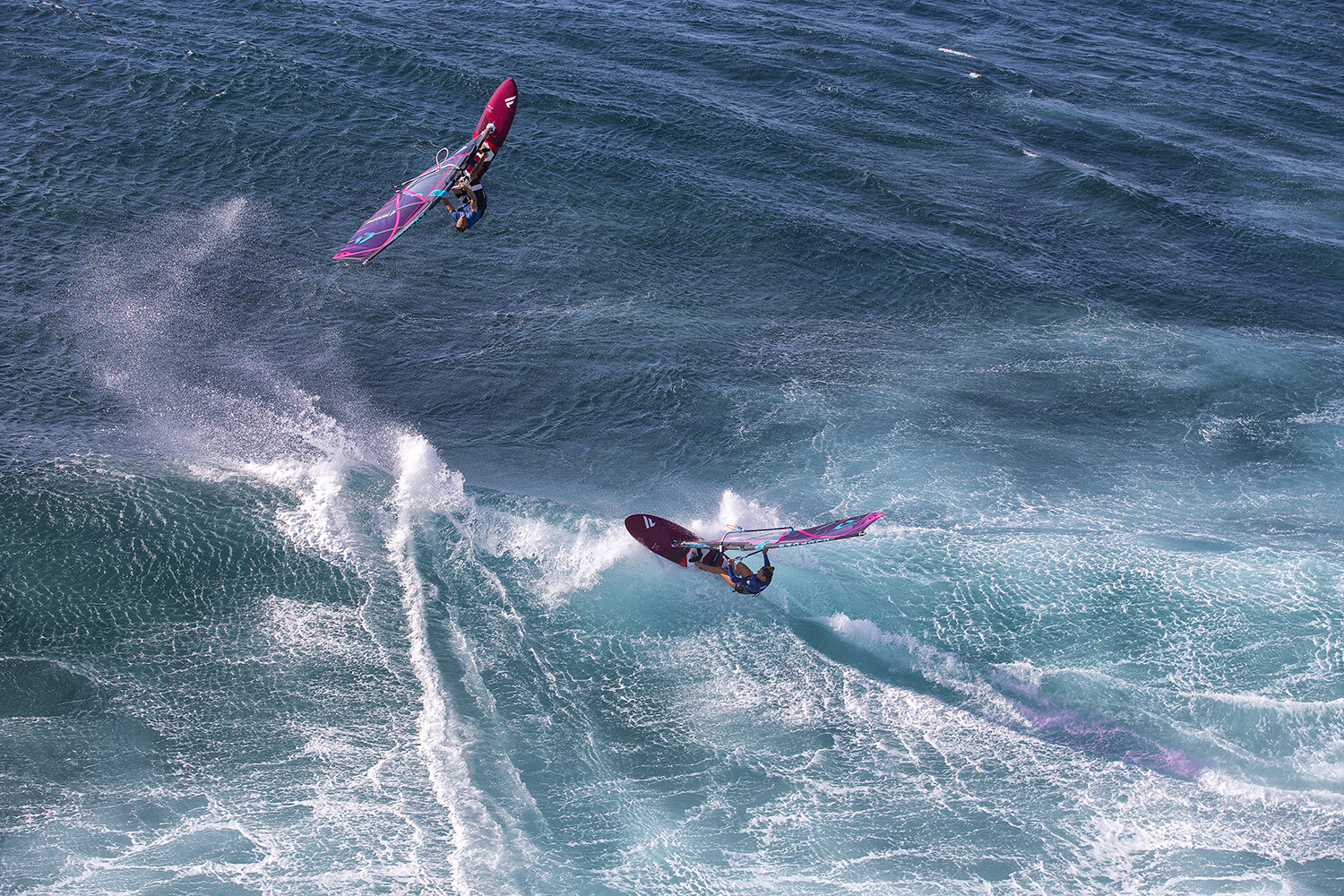 MA: I enjoy all conditions, I just do not love too strong winds, it was never my best thing. My favourite is logo high waves with light winds in general. If I can pre-order some conditions, I would go for: If it is side off, I like it very light winds to use the wave power, kind of like Pacasmayo style or some Ho’okipa super light days in the fall. If it is side on, then I will be happy to be powered up. I also love side on! I love the way it turns so much in the top turns and the backsides or backside airs are pure fun to me! I must confess, I do have a lot of fun with pretty much everything, and that is great!