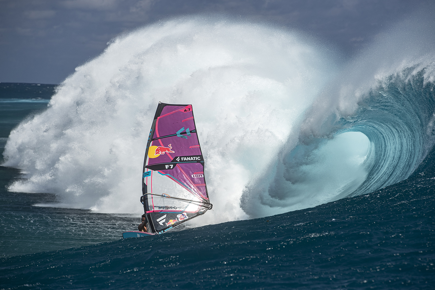 After the Aloha Classic there was no wind forecast in Maui. We saw a super good forecast for Tahiti and decided to go right at the last minute. We had nothing organized, no accommodation or any idea of what the plan was. Almost straight after we arrived, we heard the forecast was epic for Teahupoʻo. The forecast was not super big, so we arranged a mission to go and sail along with local Charles Vandemeulebroucke (Charliboy). When we arrived at the break it was much bigger than we expected and almost perfect conditions.