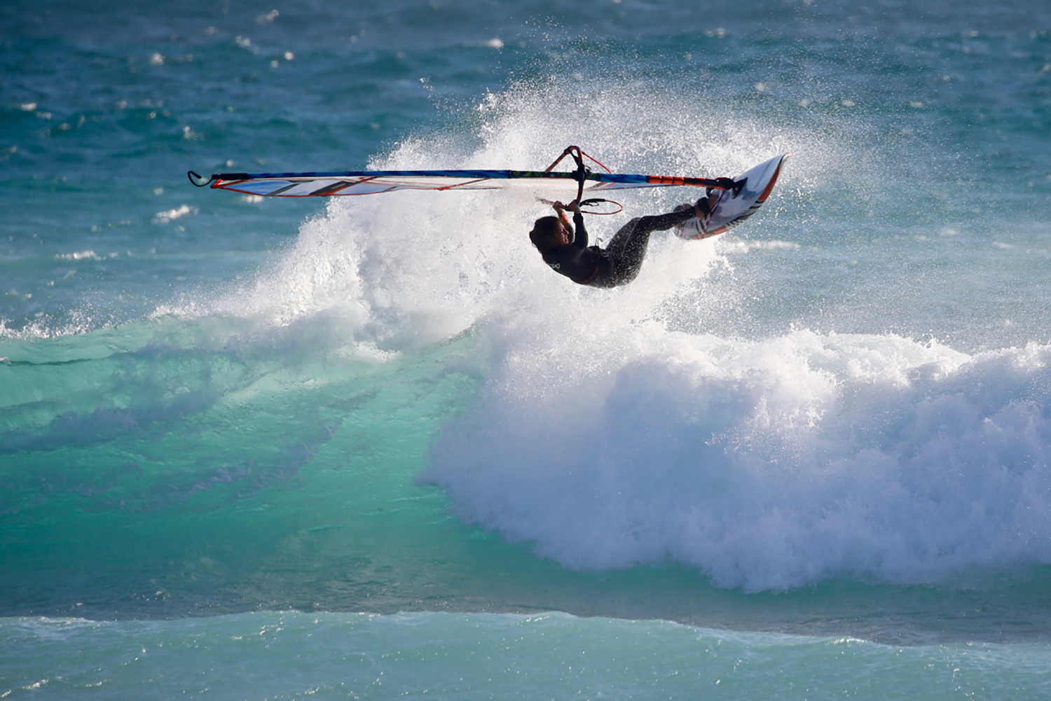 I use RRD equipment, I have the smallest production board, 70 litres, and I use it for almost every condition. I have an old 60 litre custom board also that I use sometimes in strong winds. I weigh 58 kgs and am 160 cm tall. I use RRD sails from 3.0 to 4.7; RRD has a big size range from 2.7 up! I use slim carbon booms from Al360 (one is cut to fit on my 3.0) and 100% carbon masts from Reptile masts, from 310 to 370 cm. I try to have my gear as light as possible, so all in carbon from the extensions to the masts. I use Maui Ultra fins and often play around with fin setups, sometimes I use quad, sometimes tri-fin, and in general use pretty small sizes.