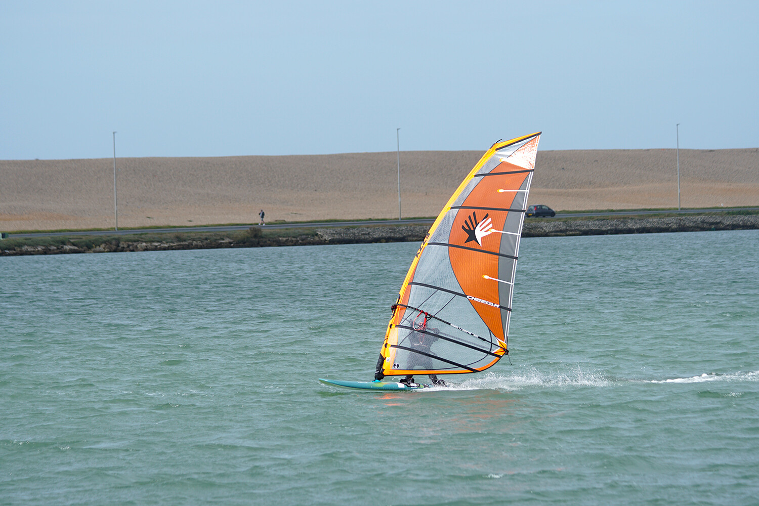 The Cheetah remains in the Ezzy lineup for 2020 as their “fast, easy, no-cam freeride sail”. It has had a little facelift, shedding around 230 grams, largely thanks to the introduction of a new wide-spaced x-ply scrim in the main window. Otherwise the design has evolved from its predecessor, holding onto many of David Ezzy’s signature features, whilst pushing ease of use and performance. Concepts such as the ‘endo-batten’ design (now commonplace and referred to by many as ‘integrated battens’) has been present in Ezzy’s sail for years, ensuring the sail’s profile symmetry between tacks. Material quality is scrutinised by Ezzy more than most, the quality and craftsmanship of the sail clear to see up close. Each sail is individually rigged, calibrated and signed-off before leaving the brand’s exclusive Sri Lankan factory, (adding a neat little colour-coordinated sail keyring around the tack strap with the QC label). Compatible with both SDM and RDM, the sail has markings in its upper panel for guidance when using alternative mast brands, or the calibrated markings provided in the tack work superbly with the Ezzy 460 cm RDM. With plenty of tuning range on both outhaul and downhaul, the Cheetah displays Ezzy’s signature panel pre-shaping, with incredible depth up most of its leading edge, the battens either side of the boom retaining the lightest contact with the mast.