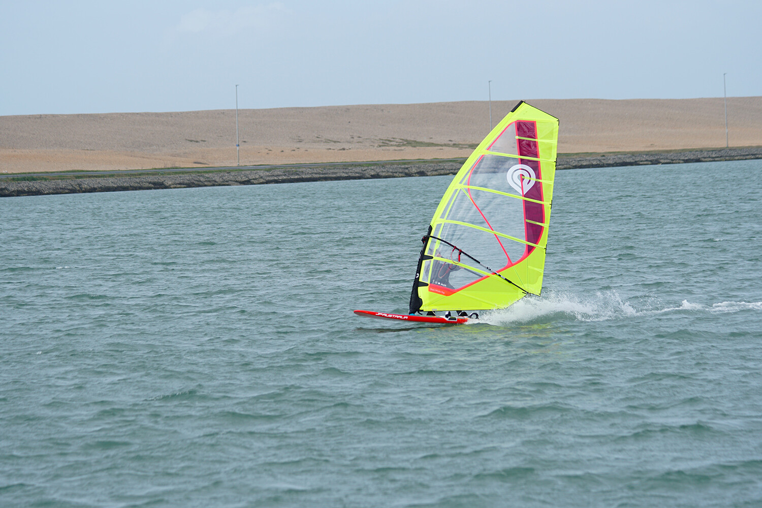 The Mark is in the Goya lineup for another season, denoted as their six-batten freerace option. The 7.2m is the third largest in the range and sports the same dimensions as its predecessor. It is also actively promoted this season as compatible for use with RDM and SDM, and as luck would have it, we have both to test it with this year, the sail sent with the Hundred Pro in RDM and SDM. Rigging is uncomplicated, thanks to the guidance provided by the visual dot at the tip of the top panel’s mini-batten, and the fact that only one clew eyelet is offered. Whichever mast diameter is used, the three lower battens retain rotation around the mast, the draft locked forward whilst the leech falls away progressively along its length. It really does have a stunning set, without a blemish or crease in any of the panels. X-ply is utilised in the luff and foot panels, leaving the brand’s preference Mono-Ply Film (MPF) in the window panel, and coloured monofilm around its perimeter to complete the visual impact. Sporting alternating battens, and the brand’s familiar carbon stretch control tendons, it is certainly standout in its new neon yellow/fuchsia get-up, the colours reversed to make even more of a statement for the all x-ply Mark Pro X version. And as with the Banzai and Nexus tested earlier this season, the Mark Pro will remain unchanged for two seasons, making this exact sail current for 2021 as well.