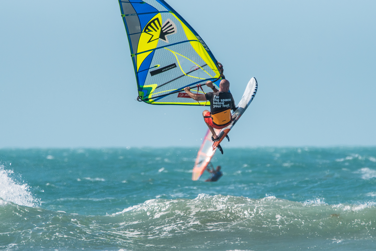 Generous straps to allow feet to pop and steer the board well in the air. Long lines enable you to sail fast over bumpy water and facilitate easy unhooking from a low position. Flatter sails cut through the air better and are easier to steer. Medium to smaller freestyle wave or wave boards so they do not have too much windage in the air.