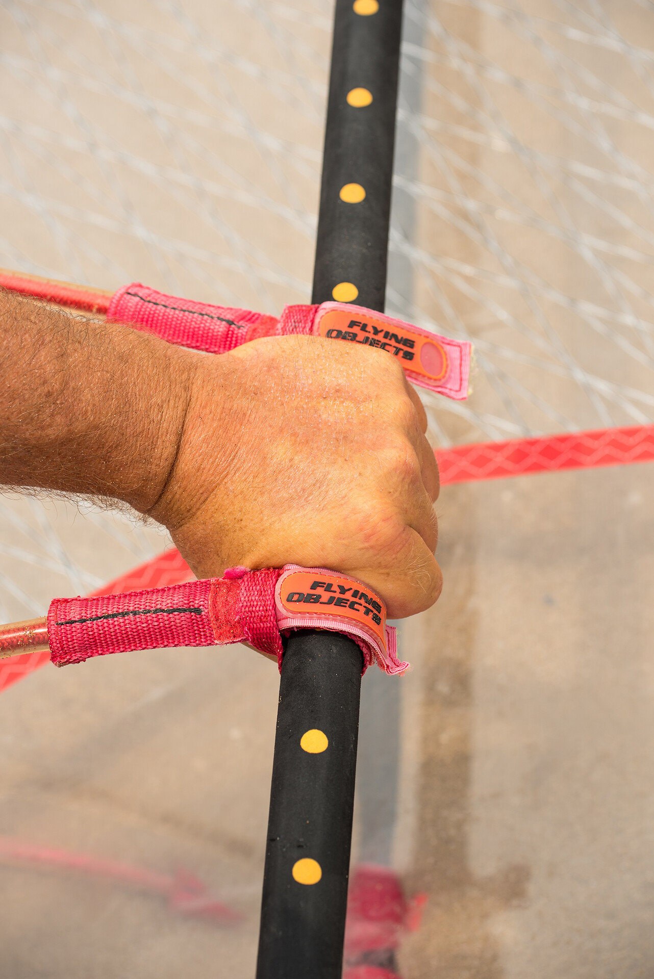This subject can be very contentious, but I advocate long lines so the sail can work with you and you are in a position that is fluid and in balance with the sail’s power. A greater distance from the rig in a straight line means you are more likely to maintain this in a move and so have a higher likelihood of completion. Longer lines also facilitate easy hooking in and out, which will smooth out your transition entrances and exits. Longer lines also get the rig more upright and therefore more efficient. The best way to embrace long lines is to sail one handed, as you have long heard me champion. Please note it is not too long a line that causes you to unhook, it is raising our hips and bending our arms in, a common ill in windsurfing.