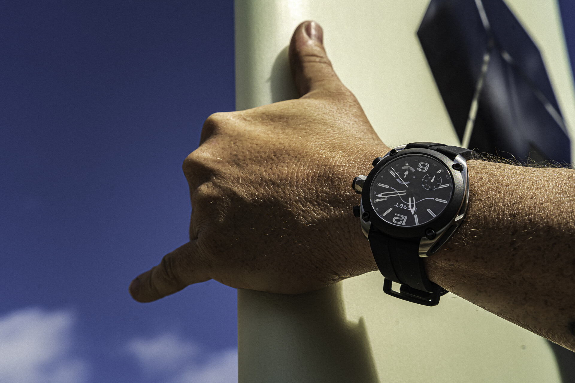 In life as you grow older you have to take on the mantle of responsibility, so while sitting in a boardroom or similar setting of importance, wouldn’t it be good if there was a watch out there that offers the ability to surreptitiously check the forecasted wind or surf by looking at your wrist, and then leave rapidly when it looks good? Well the good old Swedes, masters of design, have come up with exactly that with the ‘Weret’ range of analog smartwatches, using data from UK surf boffins, magicseaweed.com. And knowing that we at the Windsurf office need to be aware exactly when to make poor excuses to skive off to the beach, the ‘Weret’ team sent us the “world’s first connected smartwatch for surfers” to fight over while trying to duck out of all things work related. Straight out of the box it looks like the sort of watch submarine commanders wear to blow things up at the right time, with lots of dials, numbers and hands. Digging deeper into the box and things start getting very James Bond with an inductive charging pad and USB cable. Setup is simple, you just ask a 7 year old to do it while you have a cup of tea, well that’s what we would normally do, but seeing as the boss was watching we had to do it ourselves in the name of science. Actually it only took a few minutes to download the ‘Weret’ app to our smartphone and pair the watch via Bluetooth, but we still put it down on our timesheets as a full day’s work.
